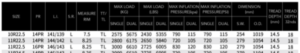 - Chỉ số tải trọng tốc độ: 148/145L – 3150 Kg/bánh đơn, 2900 Kg/bánh đôi.