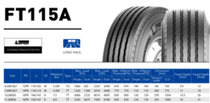 Đặc tính sản phẩm lốp Fortune 11.00R20 FT115A: