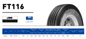 Chúng tôi hân hạnh giới thiệu đến Quý khách hàng sản phẩm Lốp Fortune 12R22.5 FT116.
