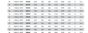 - Chỉ số tải trọng tốc độ: 148/145L – 3550 Kg/bánh đơn, 3100 Kg/bánh đôi.
