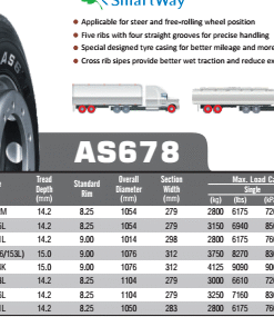 Đặc tính sản phẩm lốp Trazano 11R22.5 AS678: