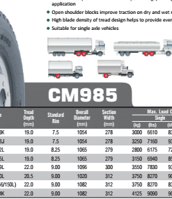 Đặc tính sản phẩm lốp Trazano 12R22.5 CM985: