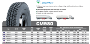 Đặc tính sản phẩm lốp Trazano 295/75R22.5 CM980:
